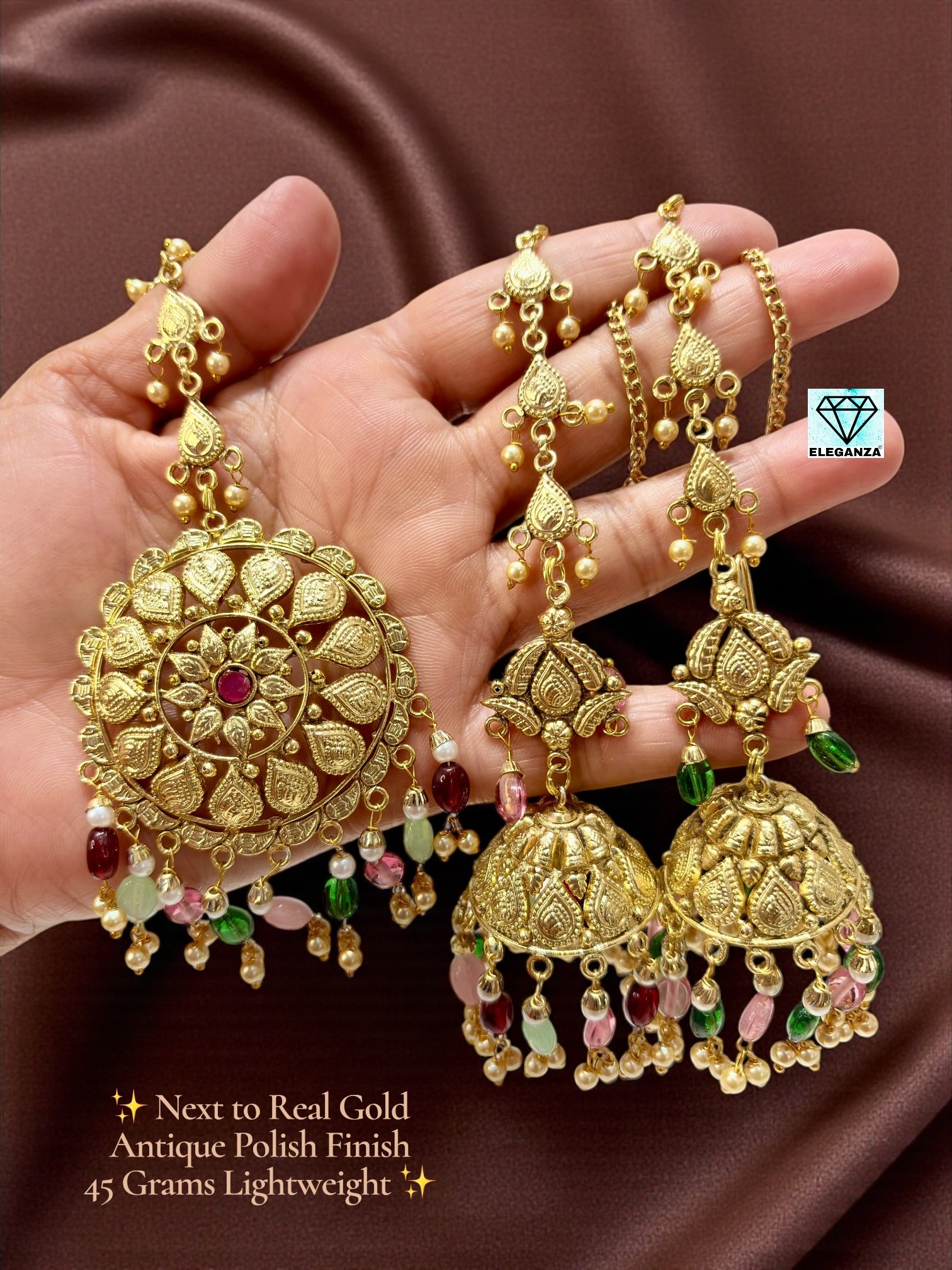 Earrings & Jhumkis, Real gold look Antique Sets, Real Gold Look Earrings & Mangtikka