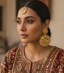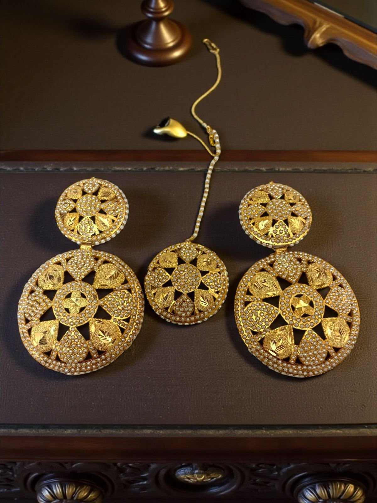 Jadau set, Real Gold Look Earrings & Mangtikka